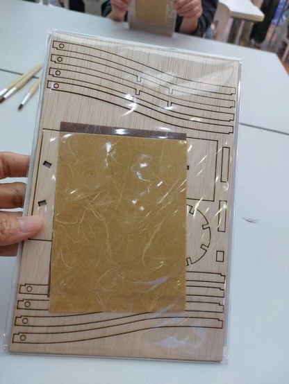 โคมไฟนี่เป็นไม้แผ่นบางๆ ออกแบบเป็นโมเดลของหอดูดาวชอมซองแด ทำง่ายๆ แค่แกะตัวโมเดลออกมาเป็นชิ้นๆ ประกอบแล้วก็เอากระดาษสาติดรอบโครงโมเดล เขาให้กระดาษสามา 3 สี น้ำตาล ส้ม เหลืองอ่อนๆ น่าจะให้ทำเป็นเหมือนกับก้อนอิฐที่เรียงรายบนตัวหอดูดาวโบราณ