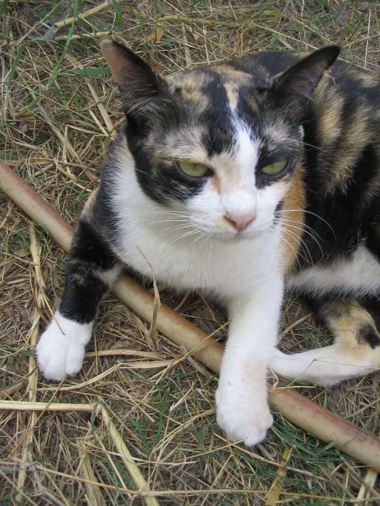 วันหนึ่งพี่ข้าง ๆ บ้านคงเห็นเราเลี้ยงแมวหลายตัว เขาก็เลยเอ่ยปากขอแมวจากเราตัวหนึ่ง ป๋าก็ปฏิเสธไป พอตกดึกฉันเห็นเจ้าเหมียวกำลังนั่งเลียขนสบายใจเฉิบ เลยแกล้งแหย่มันเล่น
